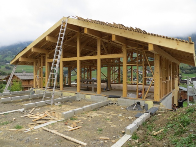 Finition premier chalet, continuation deuxième chalet et en août début du troisième