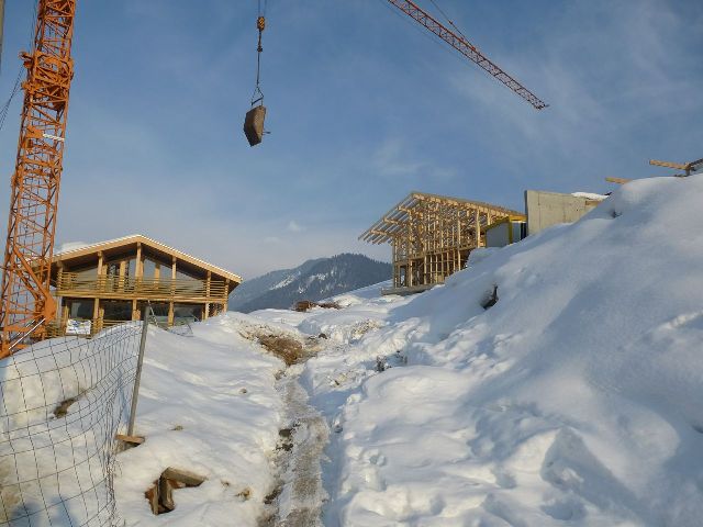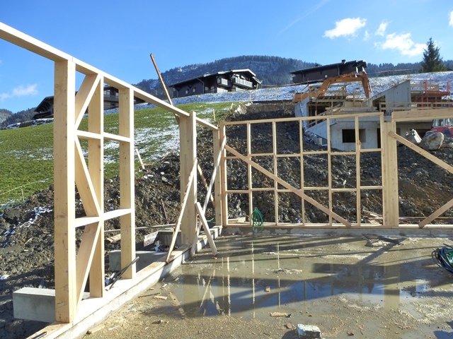 Début du chantier, fondation du chalet no 4 et travaux de terrassement pour les chalets 1,2 et 3.